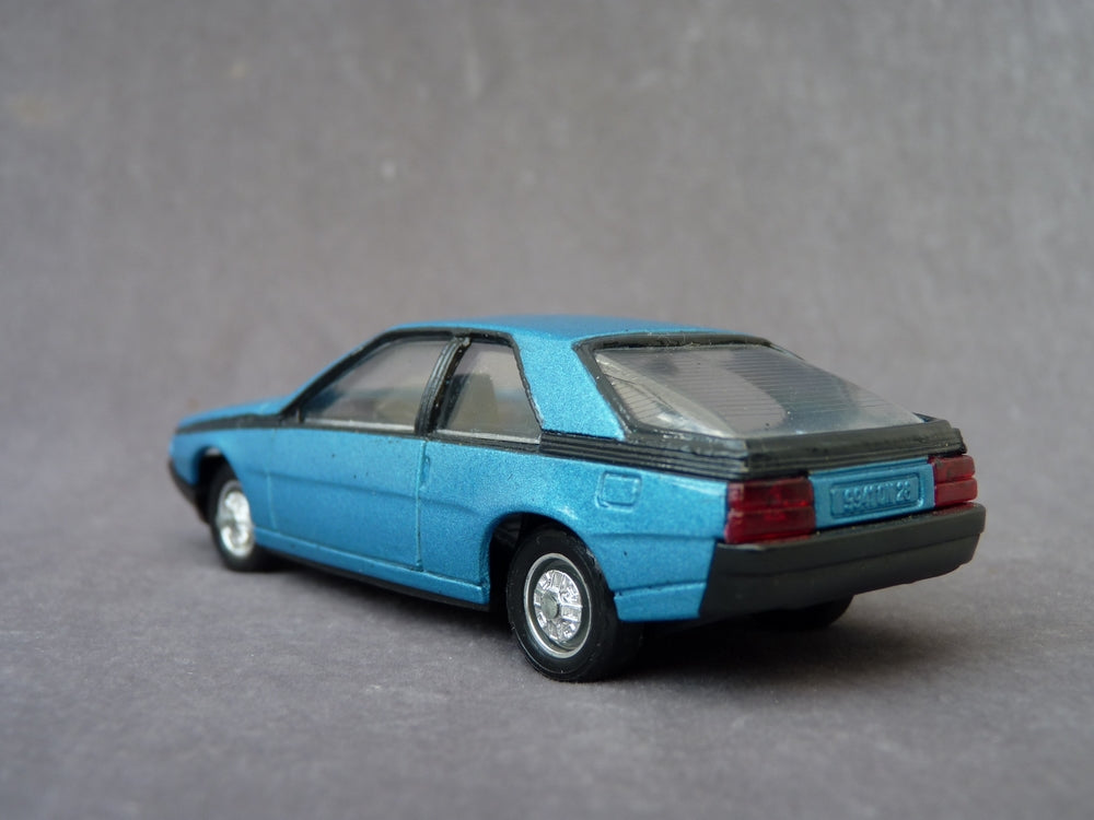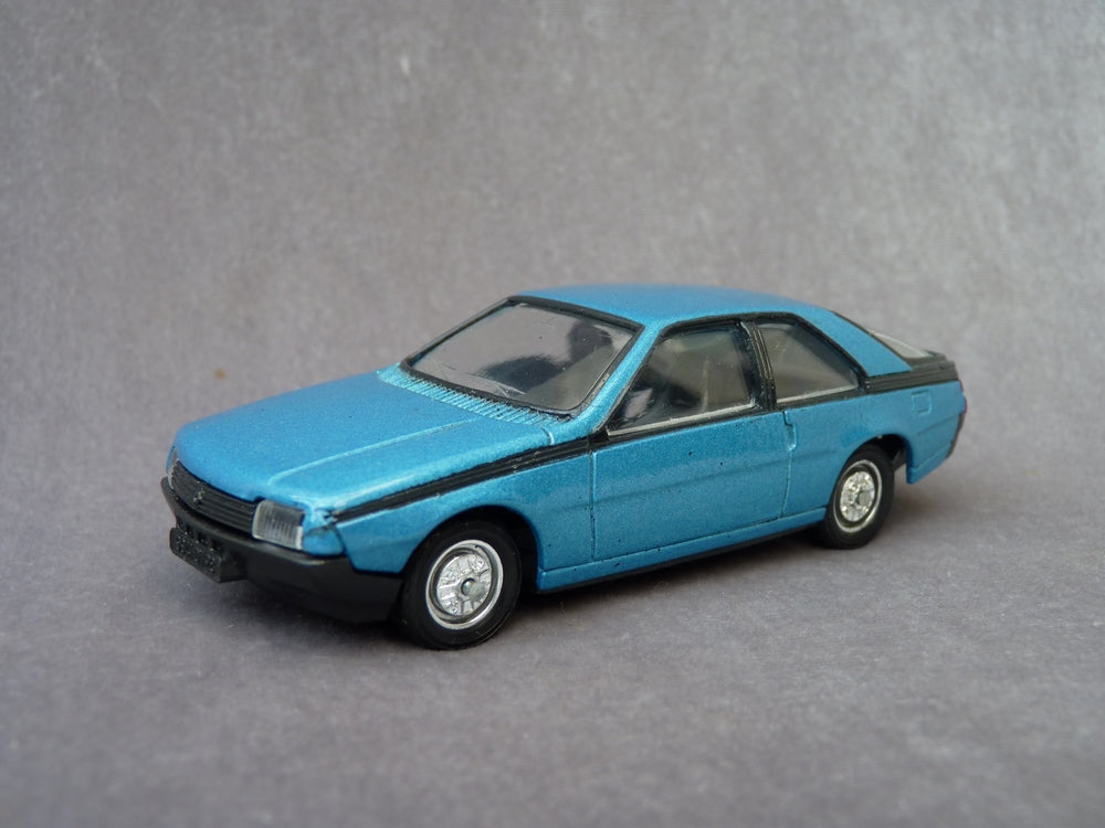 SOLIDO N°1203 - RENAULT Fuego. Echelle 1/43ème. Fabrication française datée de 07 1982 en métal injecté, de couleur bleu métallisé.