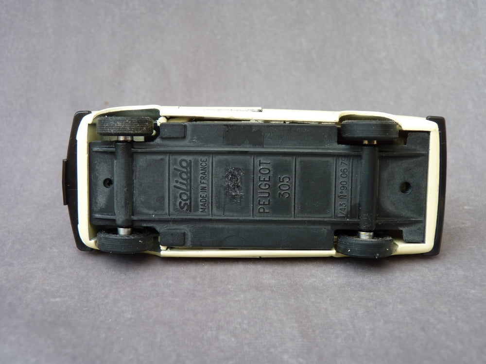 SOLIDO N°90 - PEUGEOT 305.Echelle 1/43ème. Fabrication française datée de 06 1979 en métal injecté, de couleur crème. 2 portières ouvrantes.
