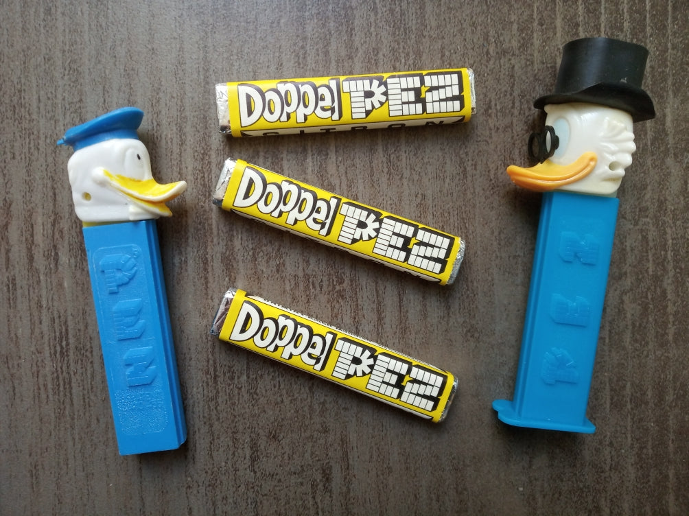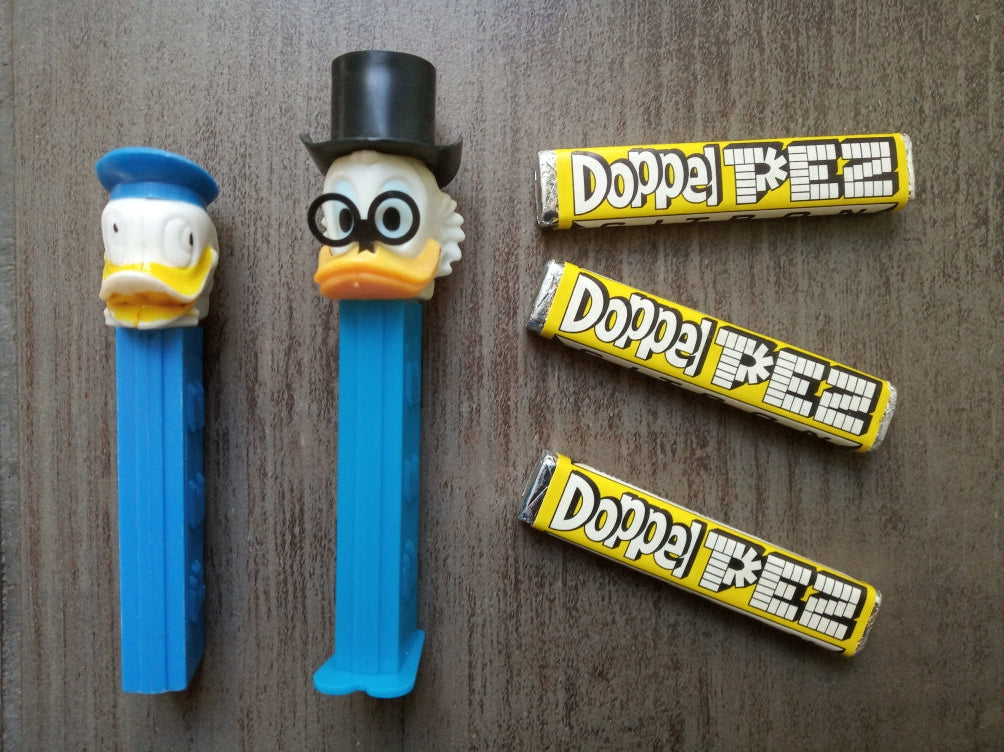 PEZ - 2 distributeurs Donald et Picsou et pastilles provenance Allemagne (vintage 1978)